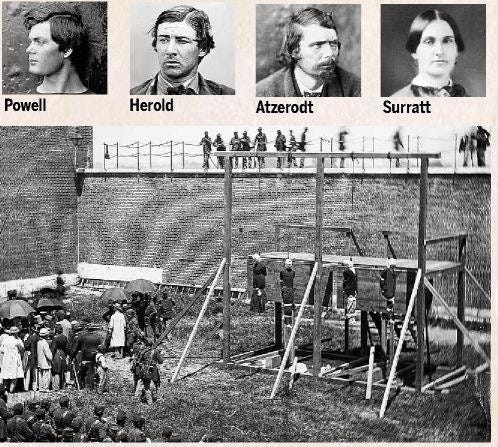 The four conspirators that faced the gallows included Mary Surratt, Lewis Powell, George Atzerodt, and David Herold.