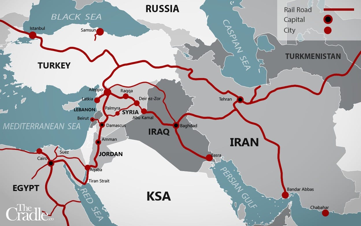 The Five Seas strategy involves the construction of rail, roads and energy grids connecting the water systems of the Mediterranean, Persian Gulf, Black Sea, Red Sea and Caspian Sea with Syria. The project serves as a logical node uniting the diverse nations of Mackinder’s world island behind a program of harmonization, integration and win-win industrial cooperation.