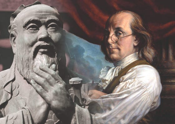 Outlining his moral philosophy in 1747, Franklin wrote, “Confucius was my example. I followed Confucius.”