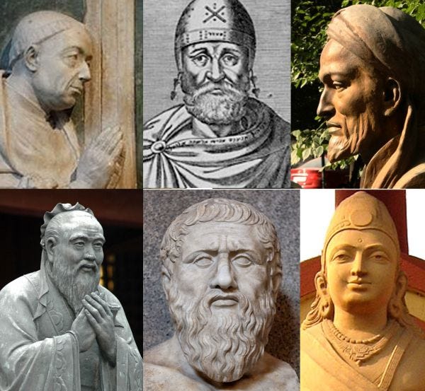 CAPTION: The renaissance principle, whose lawful obedience is so vital for the successful survival of the human species is expressed in every major culture’s history at various periods. Several leading representatives are pictured above (top row): Cardinal Nicholas of Cusa, Rabbi Philo of Alexandria, and the Ibn Sina (bottom row): Confucius, Plato and Gupta Empire Leader Chandragupta I.