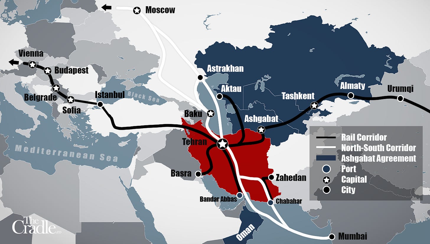 This transformative corridor is an obvious synergistic component to the China-led east-west Belt and Road Initiative, and Russian-Indian led International North South Transportation Corridor, both of which are sweeping across the world island.