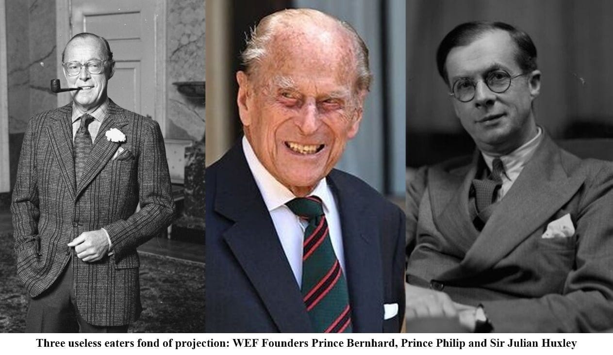 Bernhardt (card carrying Nazi and founder of the Bilderberger Group in 1954) had worked alongside his close misanthropic associates Prince Philip Mountbatten, and Sir Julian Huxley to create the World Wildlife Fund (WWF) just a few years earlier. The plan was simple: each of the 1001 founding members simply put $10,000 into the trust, which was then directed towards the green paradigm shift.