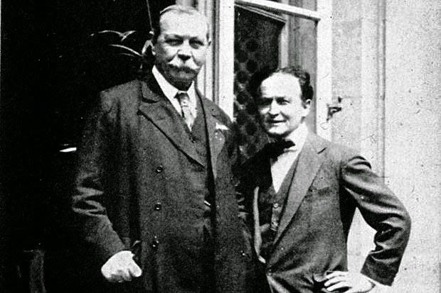 After the first world war, Doyle found himself overseeing a network of spiritualists affiliated with the elite of New York and London and as we saw in that location, Conan Doyle was directly involved with a child abduction ring that was exposed by the American magician Harry Houdini in 1924. [6]