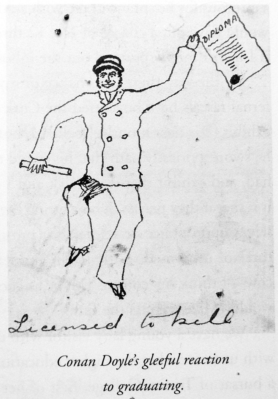 Upon acquiring his medical diploma, the young Doyle wrote the strangest message to his mother featuring a drawing of himself and the caption “license to kill”. While not in itself a proof of Doyle’s tendency to murder, within the context of everything we have read thus far, it is telling of another identity floating under the surface of Doyle’s public persona.