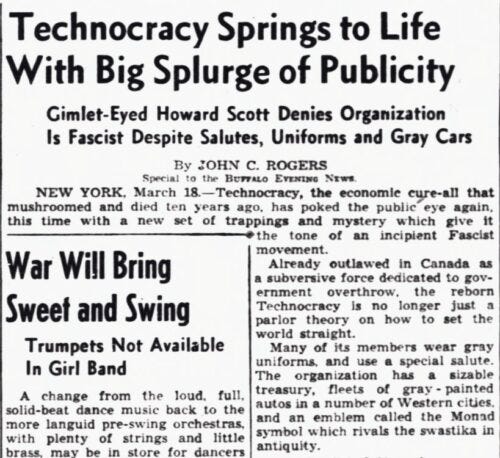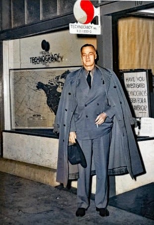 Formed in New York in 1932 under the leadership of a figure named Howard Scott (a snake oil salesman who lied about being an engineer for his entire adult life), Technocracy Inc promised to reorganize both human society and human nature itself around a top down ‘Technate of America’ of experts untainted by the filth of democratic institutions, or capitalist ideas of ‘profit motives’.