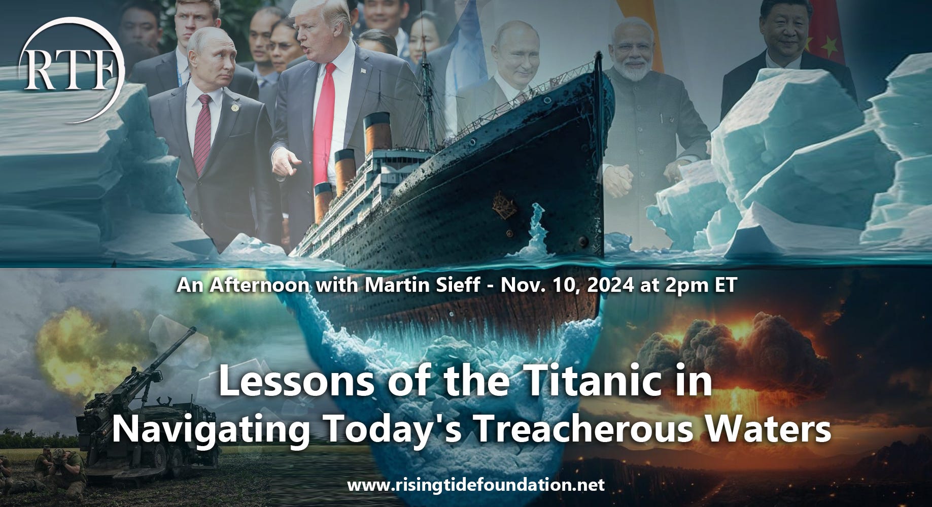 Tune in this Sunday, Nov. 10 at 2pm Eastern Time, as the prolific Martin Sieff delves into the multi-layered causes of the sinking of the Titanic with a look to navigating through dangerous waters in our present age.