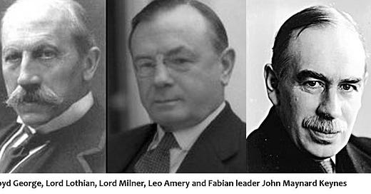 Just as the British oligarchy managed the war, so too did they organize the reparations conference in France which, among other things, imposed impossible debt repayments upon a defeated Germany and created the League of Nations which was meant to become the instrument for a “post-nation state world order”. Lloyd George led the British delegation alongside his assistant Philip Kerr (Lord Lothian), Leo Amery, Lord Robert Cecil and Lord John Maynard Keynes who have a long term agenda to bring about a global dictatorship. All of these figures were members of the newly emerging Round Table Movement, that had taken full control of Britain by ousting Asquith in 1916, and which is at the heart of today’s “deep state”.