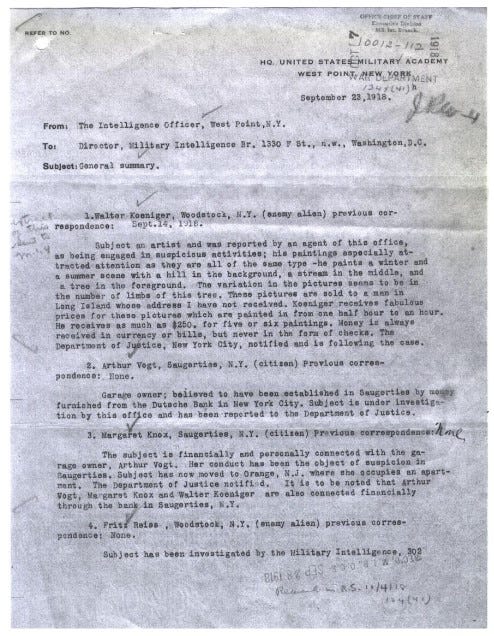 In a declassified report from the chief intelligence officer at West Point to the Director of Military Intelligence dated September 23, 1918, we read the following report on Crowley’s connection with Viereck: