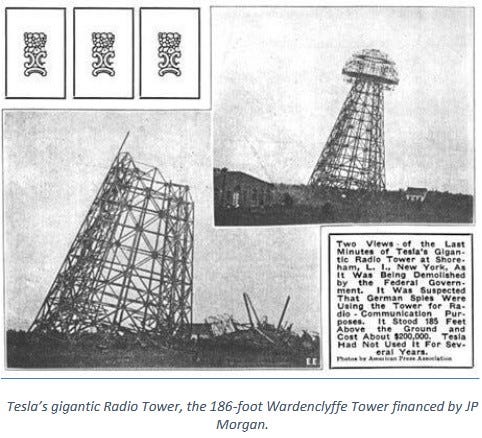 Is it possible that Tesla’s 186-foot Wardenclyffe Tower financed by JP Morgan was the “mysterious means” referred to by U.S. Naval Intelligence in 1917 to communicate messages wirelessly across the Atlantic?