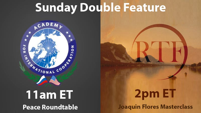 Sunday RTF Double Feature: Peace Roundtable at 11am ET, and Joaquin Flores Geopolitical Masterclass at 2pm ET