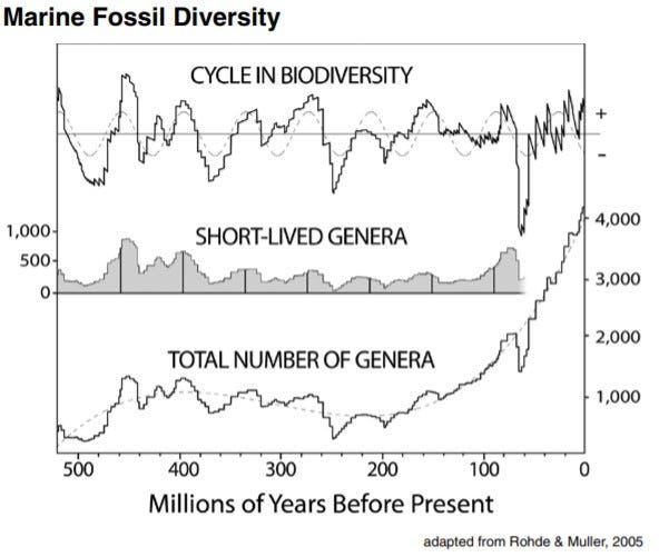 Rather than seeing any evidence that living matter began at low entropy in a closed system within the pre-Cambrian epoch 500 million years ago and moved via randomized mutations into states of increasing heat death/high entropy (aka: diminishing potentials for change)… we see just the opposite to be the case.