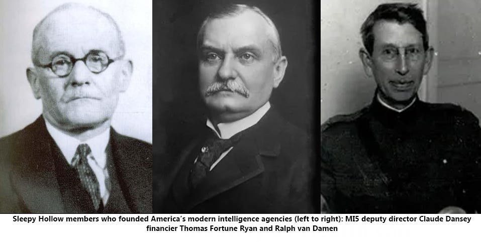 As Anton Chaitkin points out in Hoover’s FBI and Anglo-American Dictatorship, Dansey ran the agency from 1911-1914 from the Sleepy Hollow Club and Claude Dansey’s protege Ralph van Deman set up a shadowy military intelligence agency called ‘The Black Chamber’ in 1918 (which later became known as ‘The National Security Agency’ in 1930).