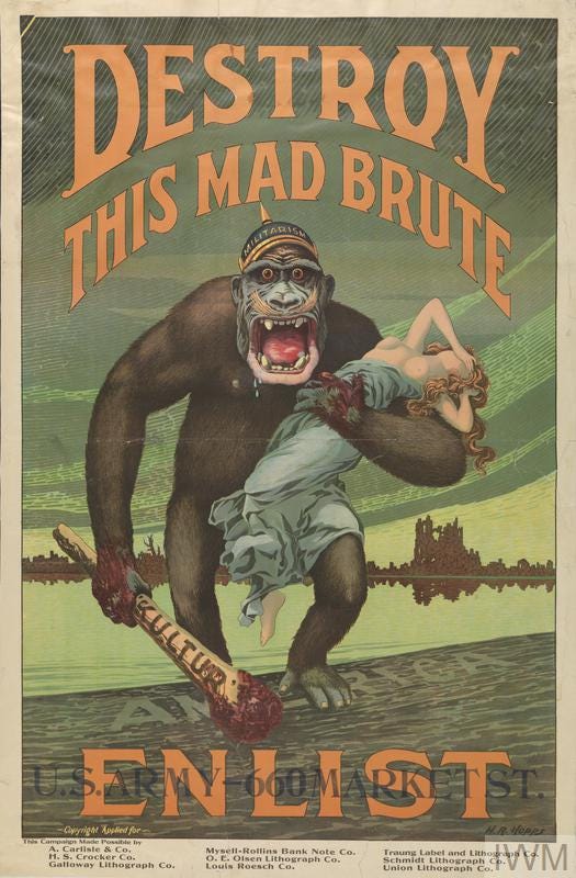 Before and during World War 1, both Doyle and Kipling once again joined H.G. Wells and Henry Cust in the powerful War Propaganda Bureau overseen by Lords Northcliff and Beaverbrook, where the team of imperial creatives put their talents to work generating propaganda to build support for war among British subjects while transforming the image of Germans from cultured neighbors into baby-killing huns.