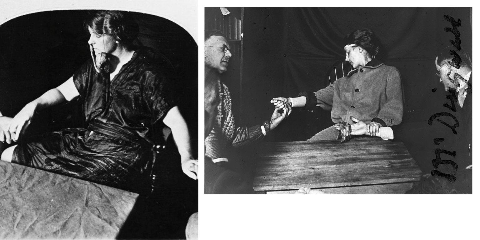 Although sold as a critic of spiritualism, Carrington was a rampant accomplice of fraudulent mediums having been caught assisting the Italian medium Eusapia Palladino in carrying out her table levitation, glowing hand shows, and aparationism in 1908. Carrington even became her manager and co-authored a ‘scientific study’ produced by a team of three experts dubbed ‘The Fielding Report’ in 1909.