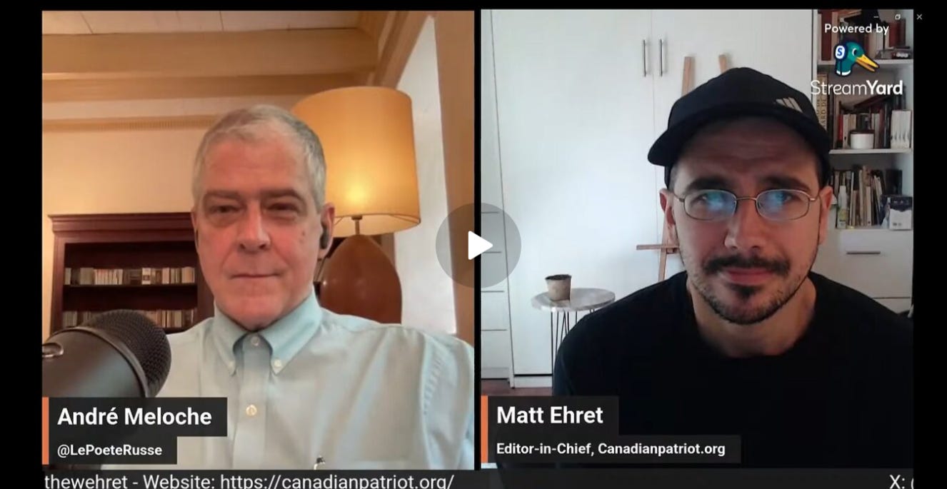 This week, I had the pleasure to chat with my fellow Quebec patriot, poet and podcaster Andre Meloche on the topic of the Clash of the Two Quebecs, the ugly truth of the Quiet Revolution, philosophy, Plato, secret societies and much more. Click below to watch the full program: