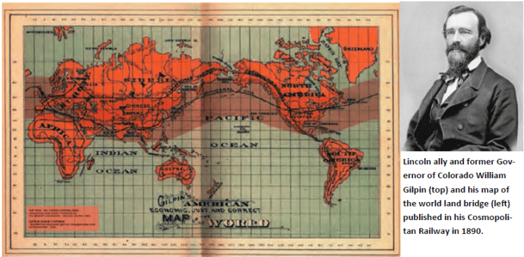 The vision of a new paradigm of relations amongst sovereign by development corridors from east and west was becoming increasingly inevitable in the minds of oligarchs and republicans alike with America’s prophet of the Manifest Destiny, William Gilpin now advocating loudly for his “cosmopolitan railway connecting the North America with Eurasia through the Bering Straits.