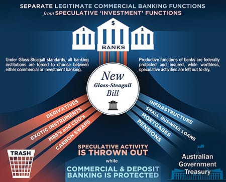 If America and the western order is to somehow find its moral fitness to survive, and if a world war is to be avoided in the coming near-term future, then certain fundamental banking reforms will be needed. Among the most important of these reforms will be a breaking up of banking activities into two categories under a renewal of the Glass-Steagall bank reform, which was repealed by Bill Clinton in 1999.